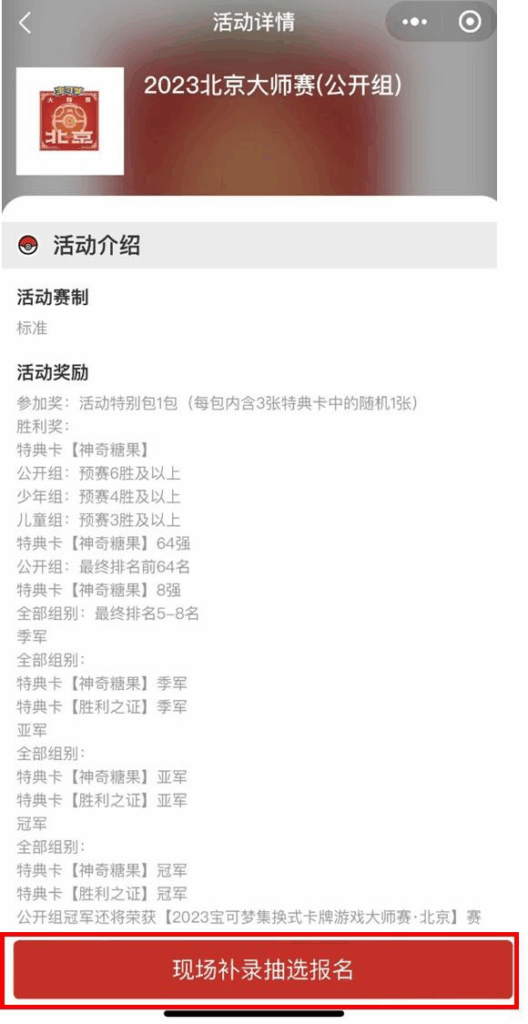 Using the official “Pokémon Card Membership” WeChat mini program, Trainers could register for a participation opportunity via lottery. The registration period was 18:00:00, June 7, 2023 (Wednesday) to 23:59:59, June 13, 2023 (Tuesday). The following allocations were given via lottery: