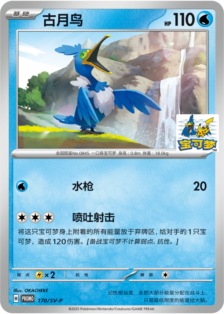 Pokémon Official Card Gym – Shanghai Zhongshan Park (Crescent Moon Bird) grand opening celebration card. Trainers must spend at least 99 yuan in a single transaction. 30,000 cards were available on a first-come, first-serve basis.
